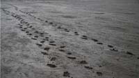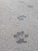 Kondensstreifen zum Thema Spuren | Pfoten auf Asphalt zum Thema Spuren | Kondensstreifen | Spuren im Schnee | |||